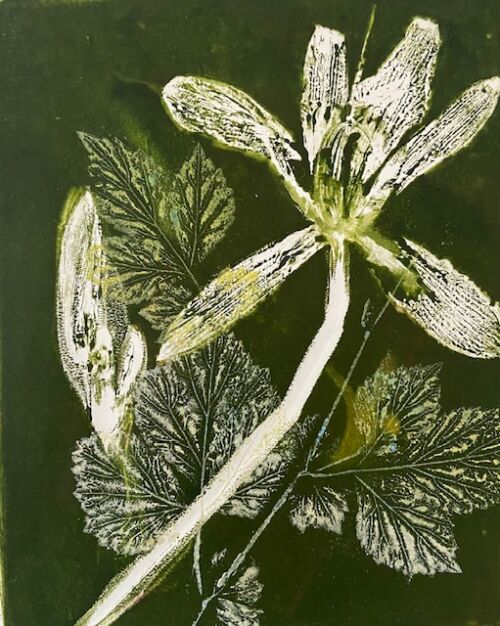 This botanical monoprinting workshop is a great way to celebrate spring foliage and flowers, and try your hand at gelli printing in a fun, easily accessible, low stakes way using plants, acrylic paint and a gelli plate. All rudimentary materials will be provided for success! Participants will go home with 4-5 original, really cool prints. Note: More serious artists are welcome to bring their vision, their own acrylic paints, and printing papers. Any acrylic paint and any paper will work.